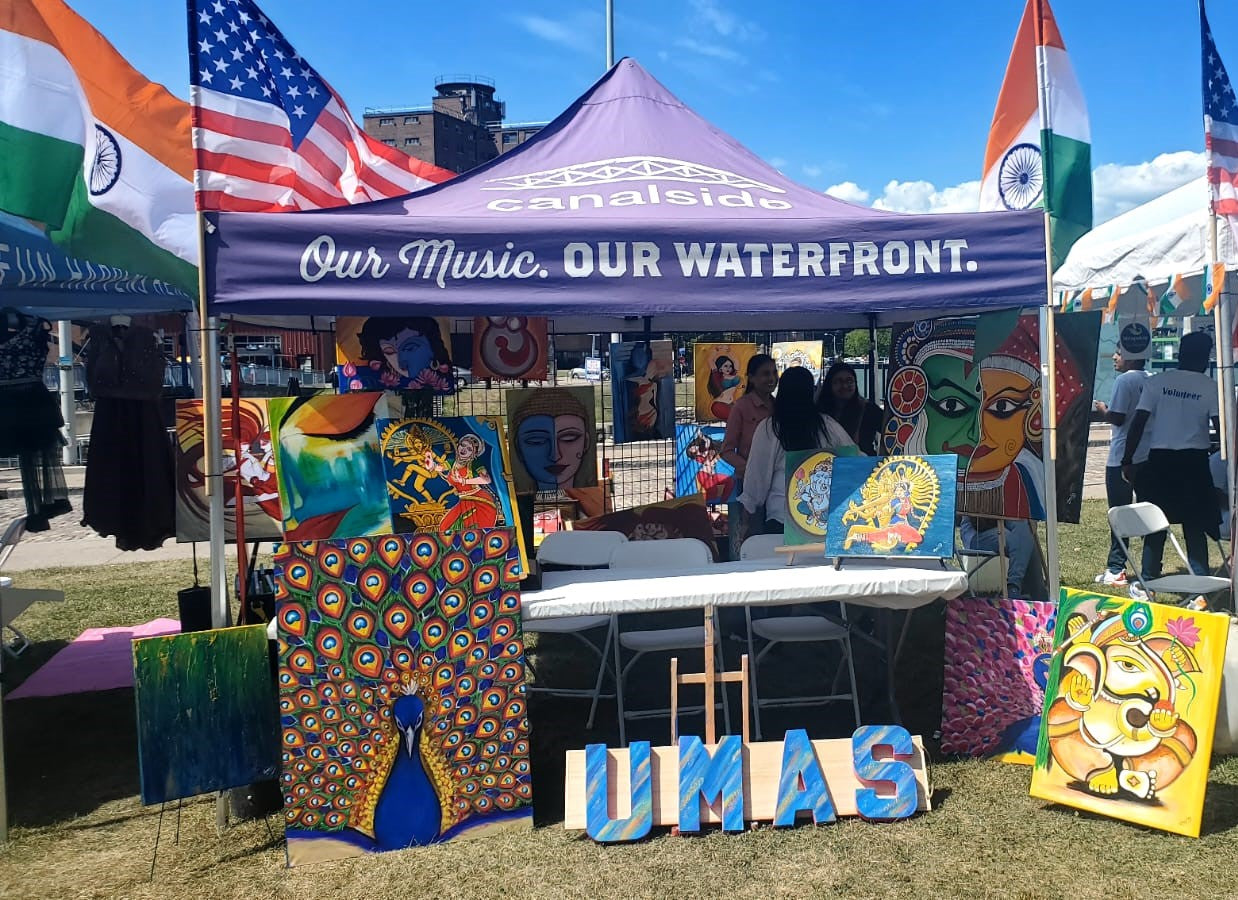 Her artwork has been exhibited at the Niagara Arts and Cultural Center in New York, as well as at various art festivals and expos. Most of her work are in Acrylic medium and some are combinations of oil and acrylic. Her creations are contemporary Indian painting which include various styles and movements influenced by both tradition and more art forms, including abstract, figurative and landscape painting. Her work consists of Modern Indian art, figurative paintings, Tanjore painting, Miniature Mural painting, free style. She has been summoned for many Art projects (for events and Cultural performances/shows) and has conducted demonstrations and project-based art classes for children and Adults.
